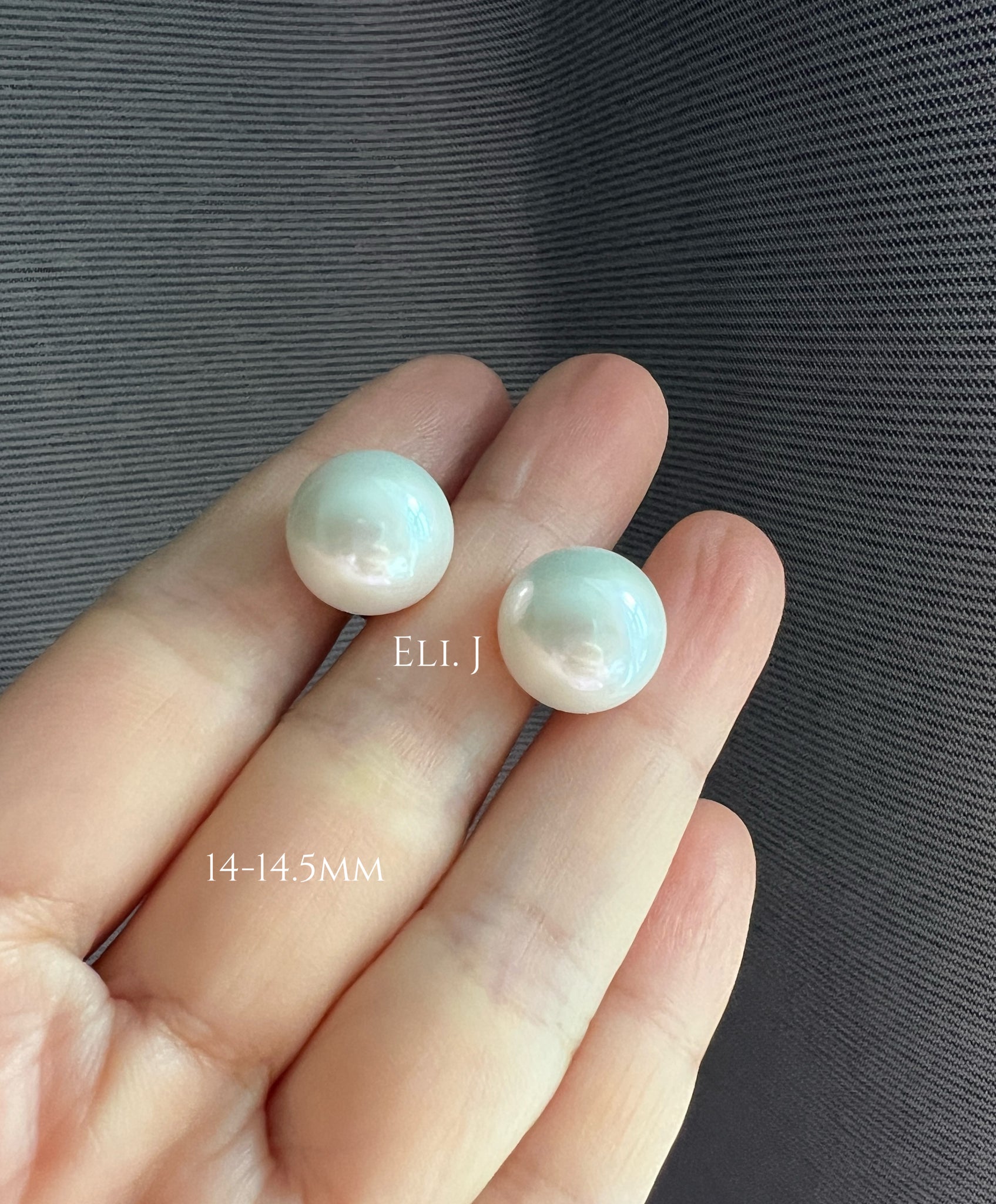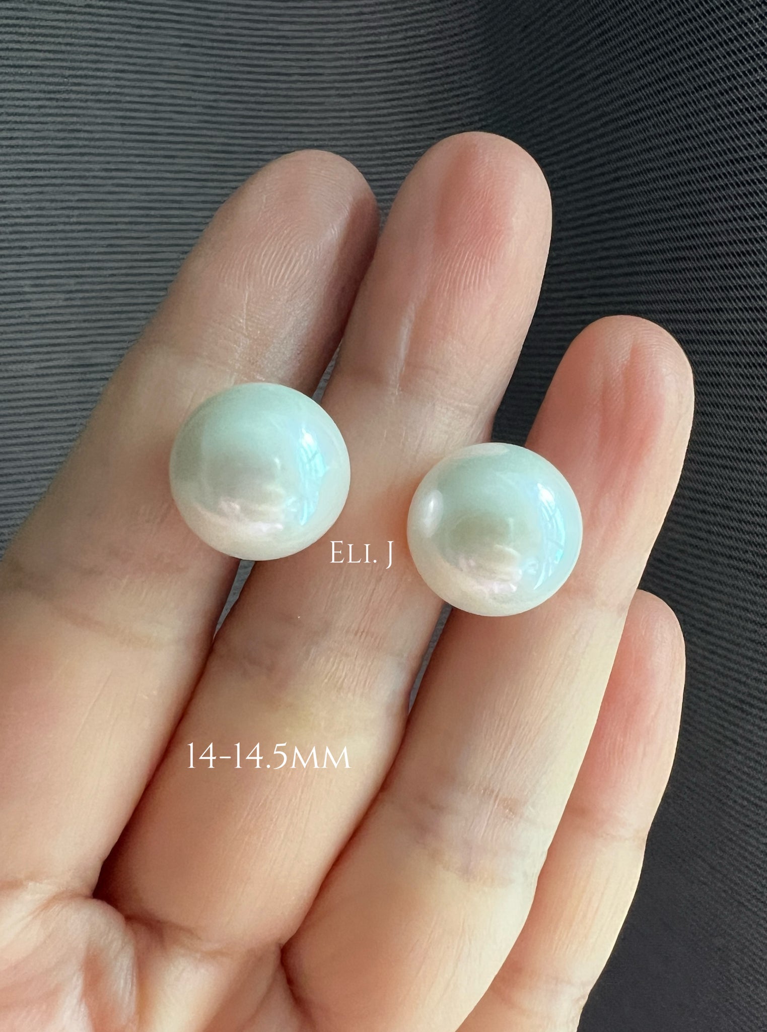 Perfect-round and beautifully lustrous ivory freshwater pearl orbs for your ears. Huge 14-14.5mm wide.