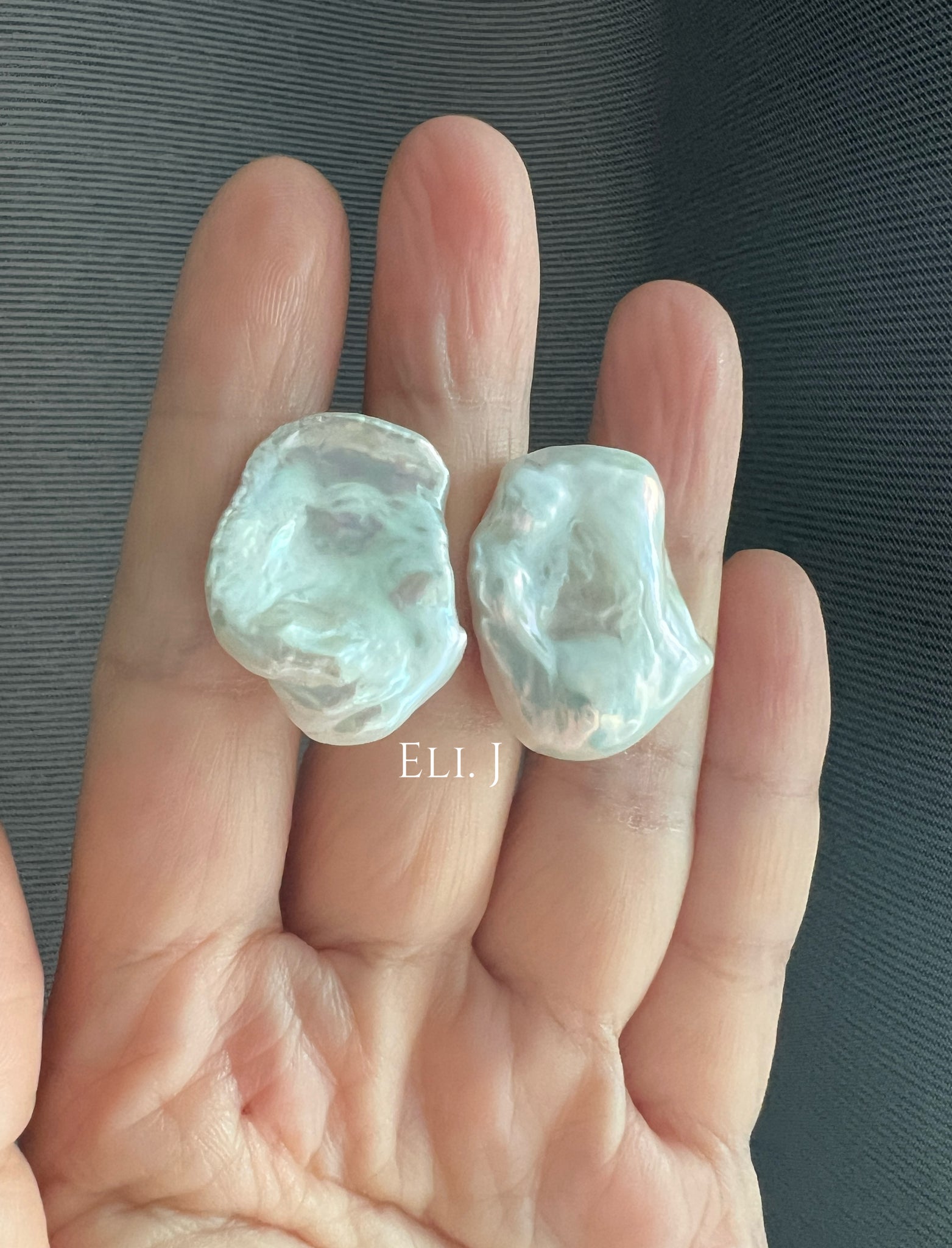 [RARE] XL Ivory Keshi Pearl Earring Studs