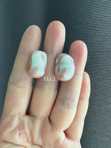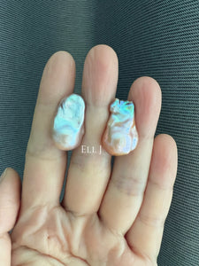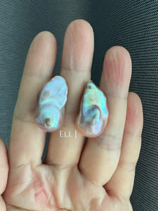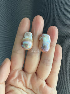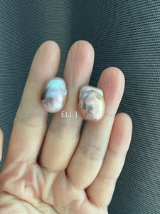 A small collection of the best purple-peach baroque pearl earring studs in shades of champagne, golden, lilac and purple. With hints of rainbows, blues and pinks.