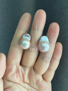 A small collection of the best purple-peach baroque pearl earring studs in shades of champagne, golden, lilac and purple. With hints of rainbows, blues and pinks.