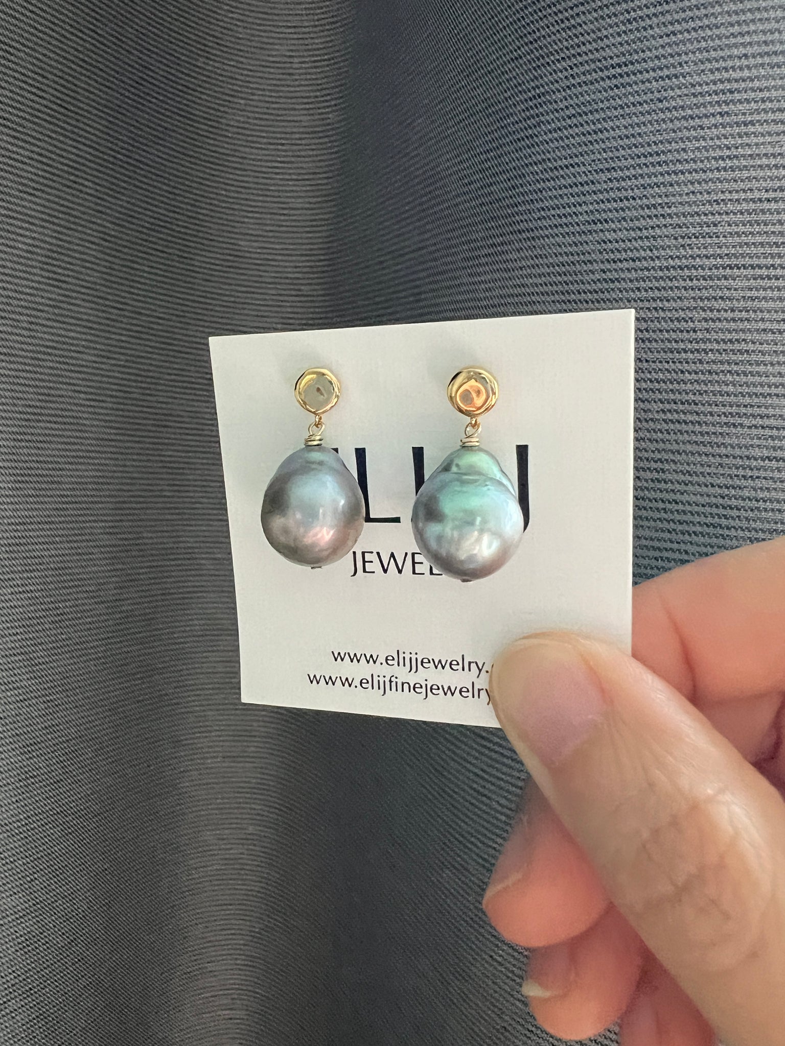 Deep silver pearls with blue-pink lustre. On minimalist round gold plated studs with 925 silver posts.
