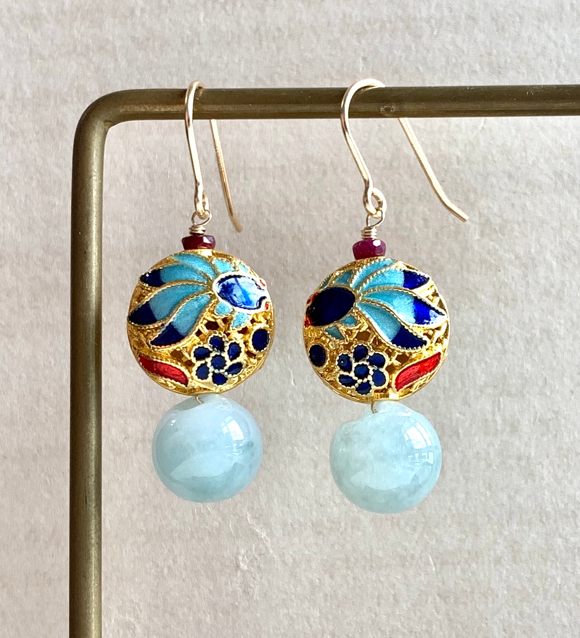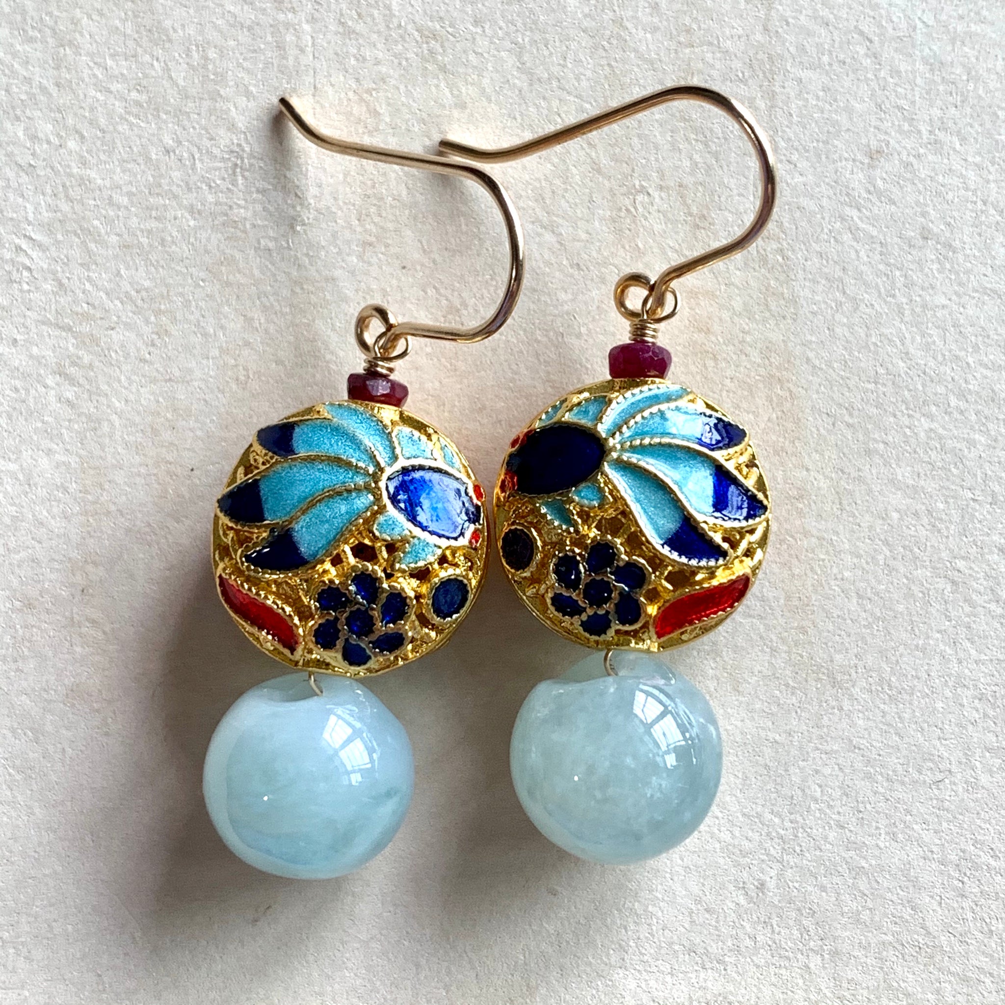 Beautiful, translucent jade are paired with elegant cloisonne beads of goldfish swimming.